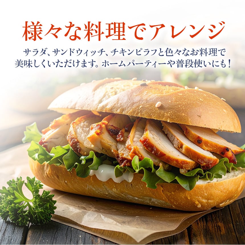 袋から出してスライスするだけで、すぐにご馳走の一品に。鶏肉本来の旨味と、しっとりとした食感をダイレクトにお楽しみください。ワインやビールのお供に最高です。