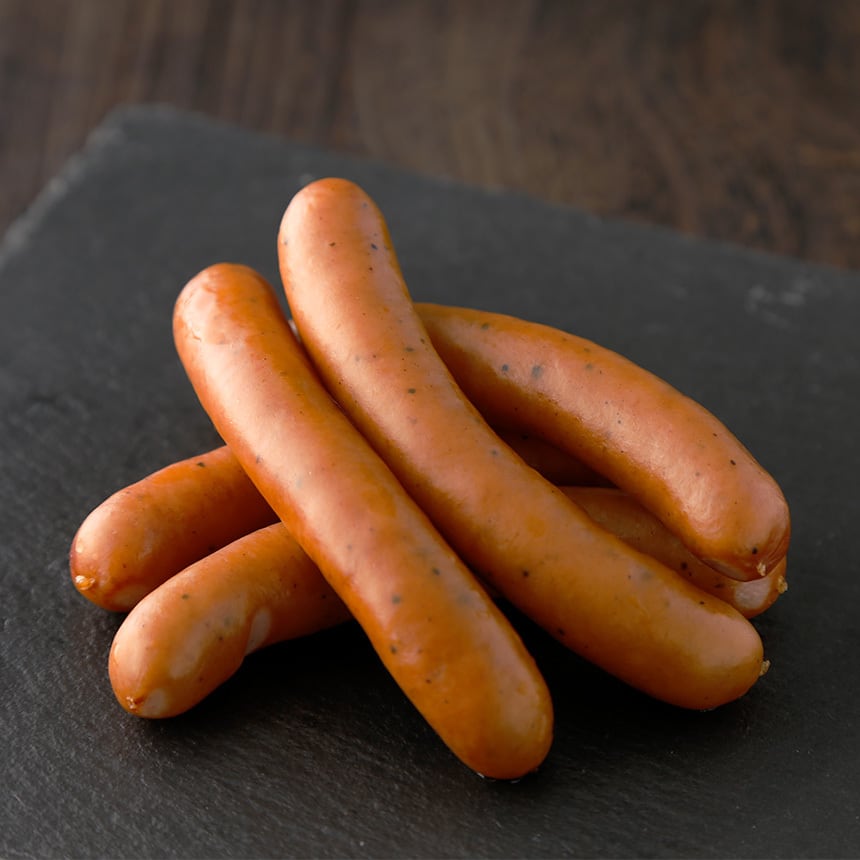 トワ・ヴェールの荒挽きウインナーは、北海道産の良質な豚肉本来の旨みを引き出すために、挽き肉にしてから3日から5日間塩漬して熟成させ、デリケートな天然羊腸に詰めて桜のチップでスモークして仕上げております。