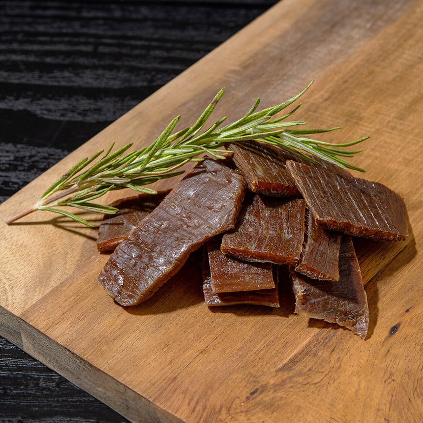 トワ・ヴェール ビーフバイツは、北海道産の牛モモ肉を使用し、厚みのあるジャーキー風に仕上げました。